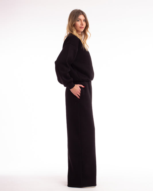 Tuta muse nera L/XL, materiale ottimo, morbido, calza benissimo e molto comoda con pantalone a palazzo davvero bello!