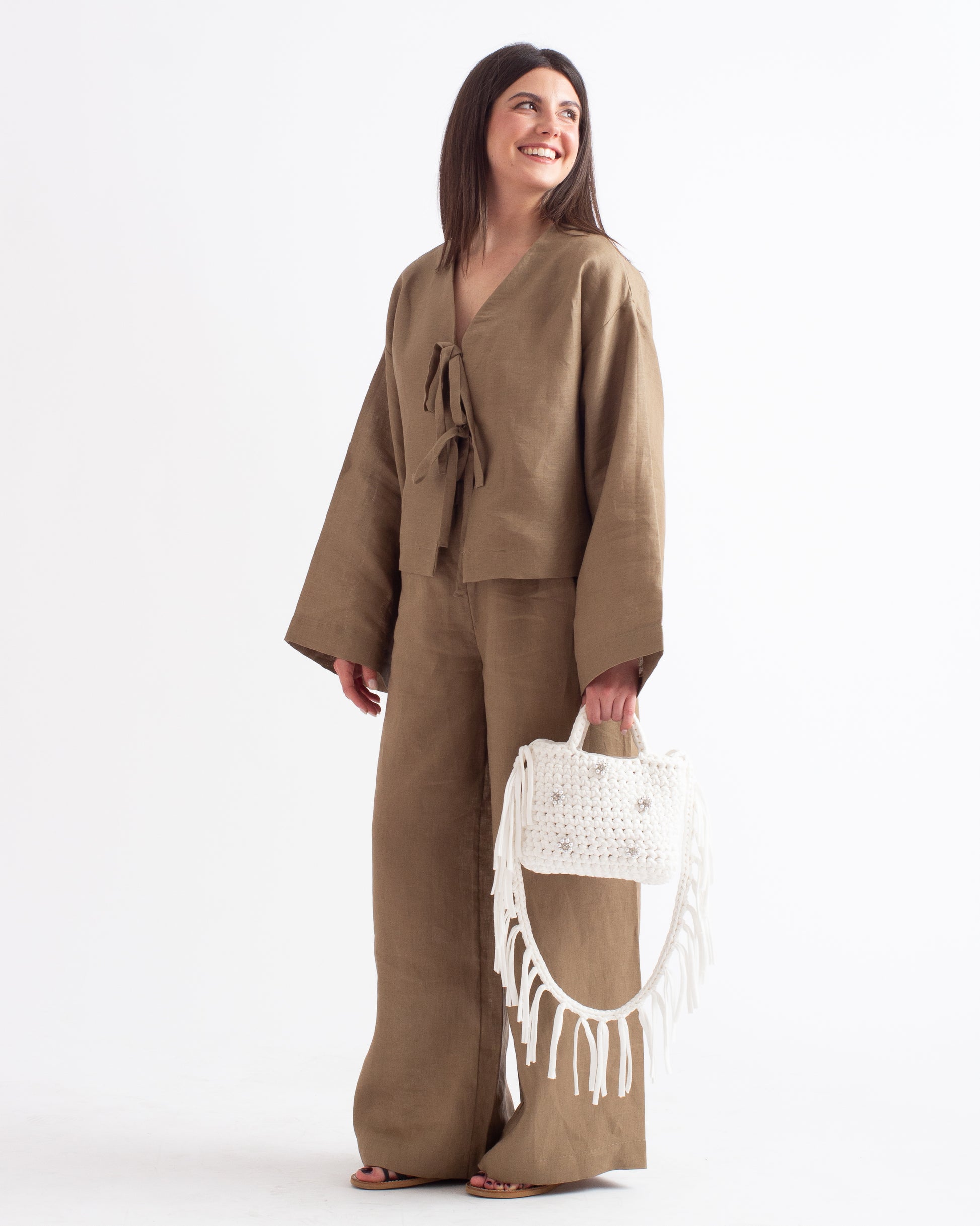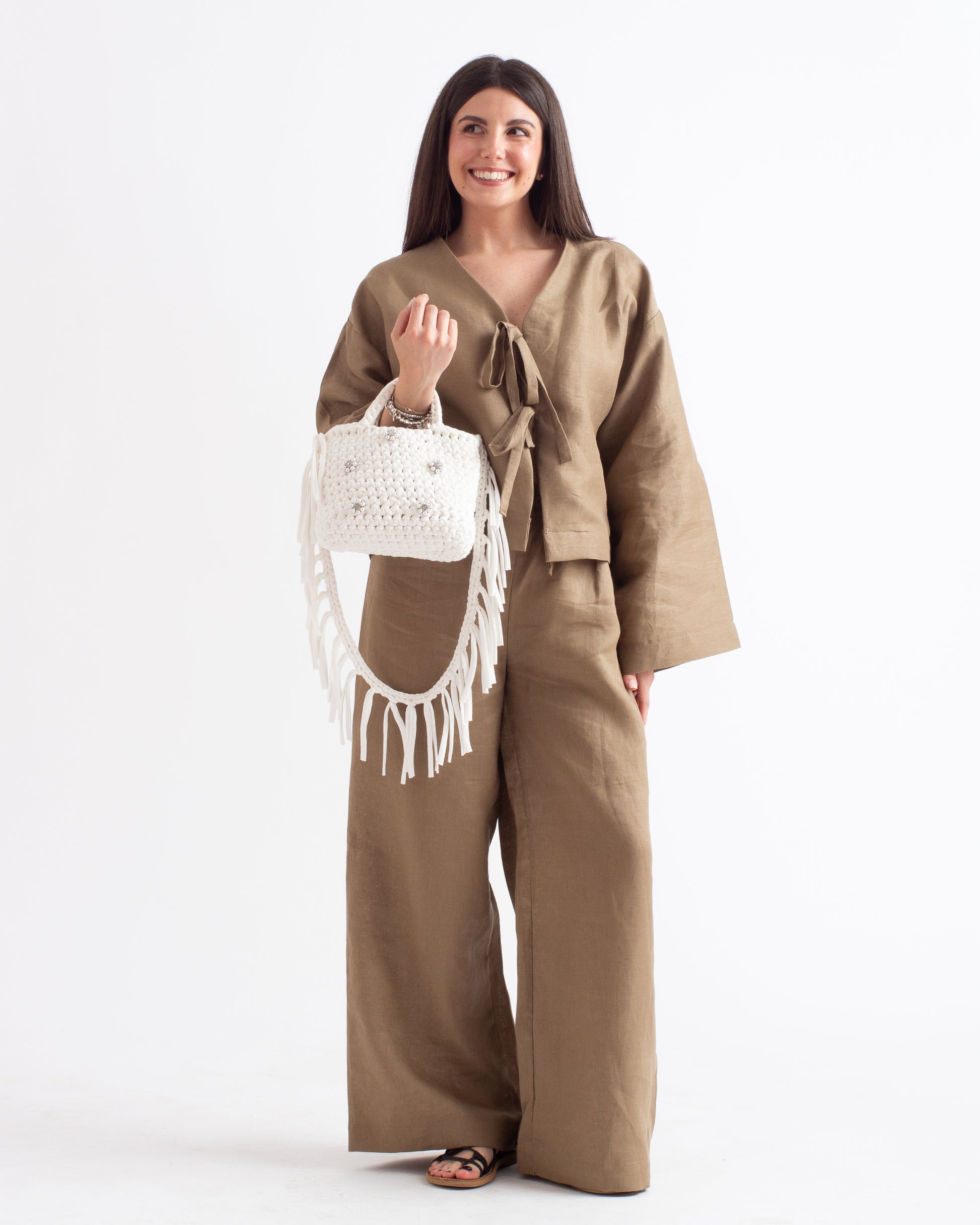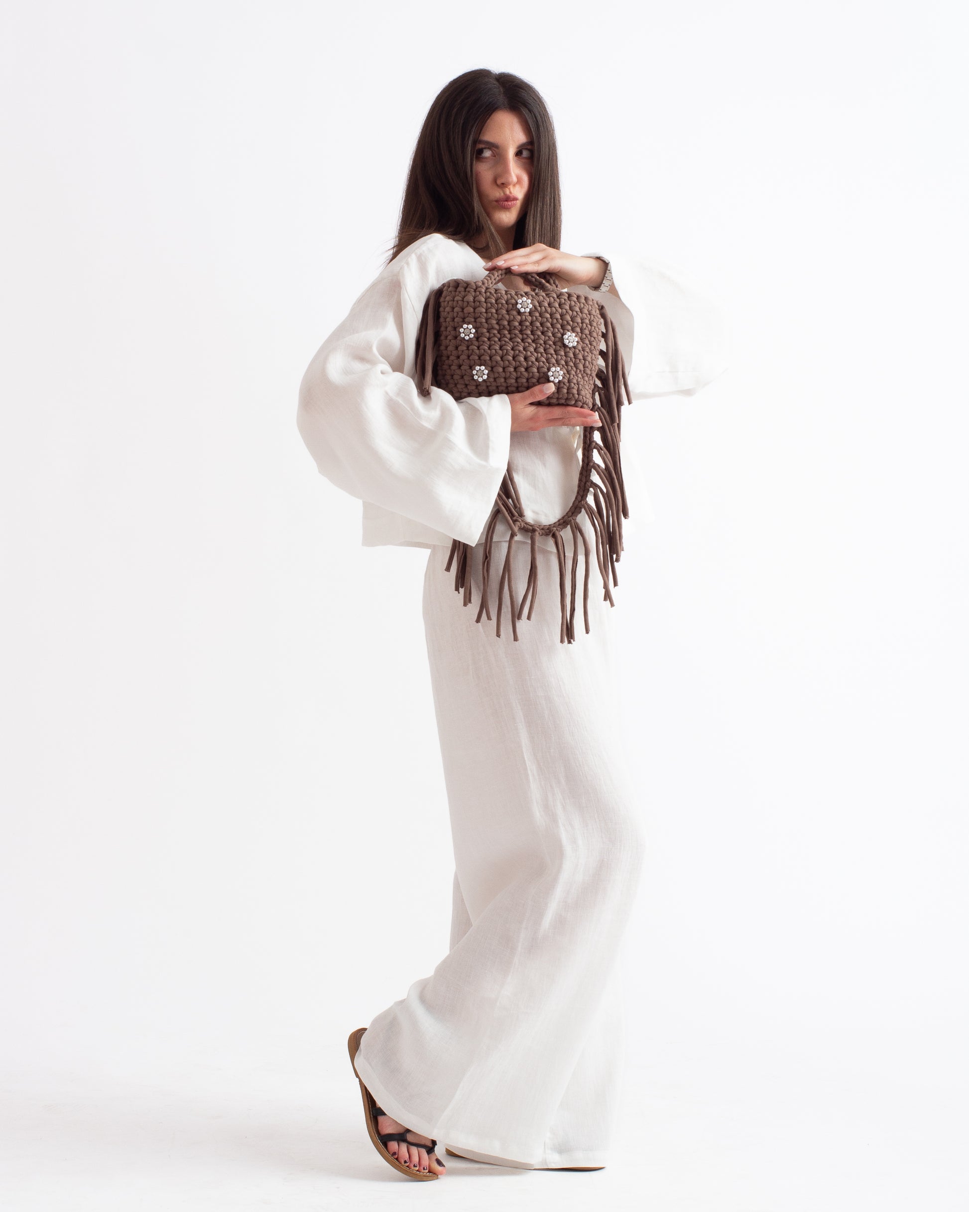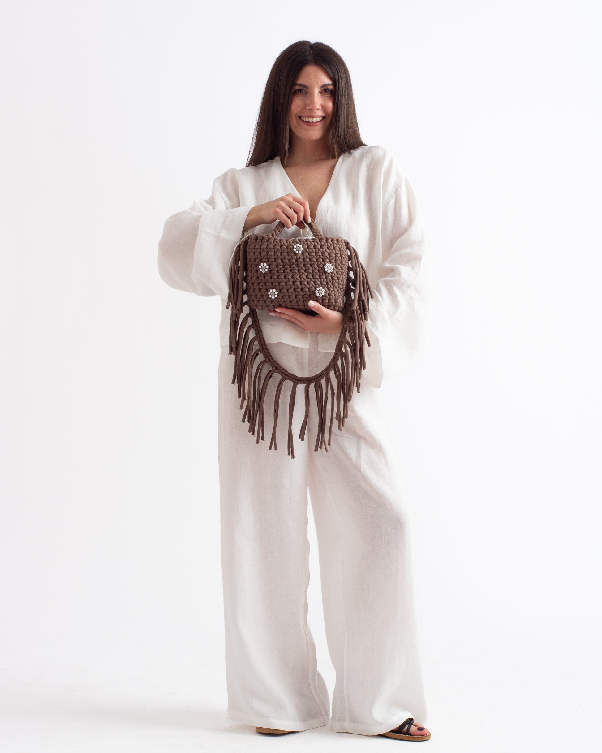 Borsa all'uncinetto realizzata a mano in cotone 100% con bottoni gioiello e sacca interna, sempre in cotone.