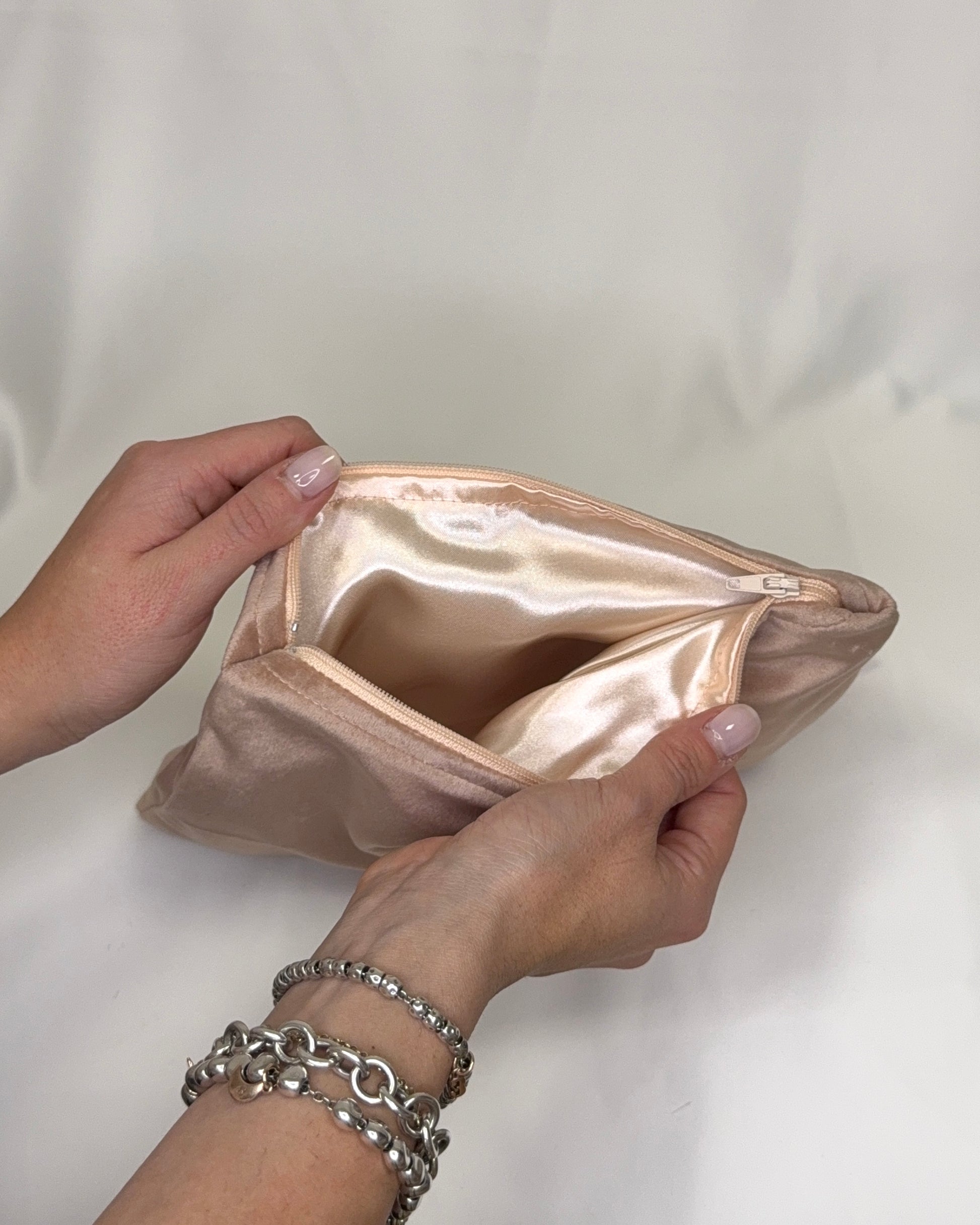 Raffinata ed elegante, questa pochette in simil velluto è un accessorio prezioso e sofisticato. L’esterno morbido e vellutato si sposa perfettamente con l’interno in raso prezioso, per un tocco di lusso e femminilità. Perfette per completare il tuo look o come regalo speciale che conquista al primo sguardo.