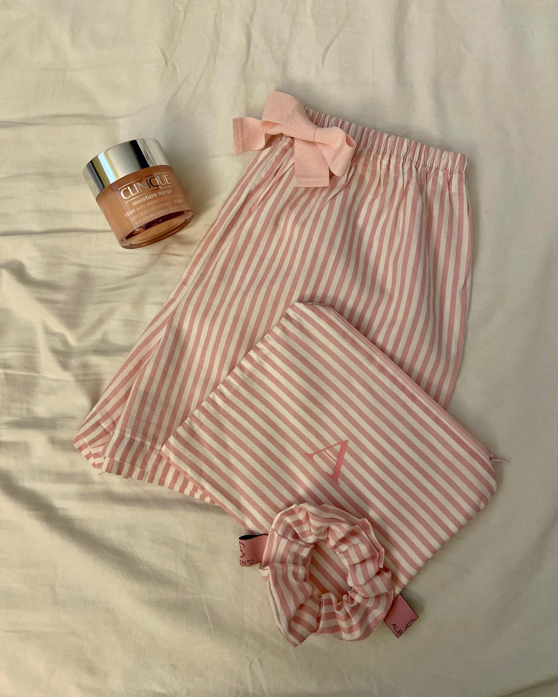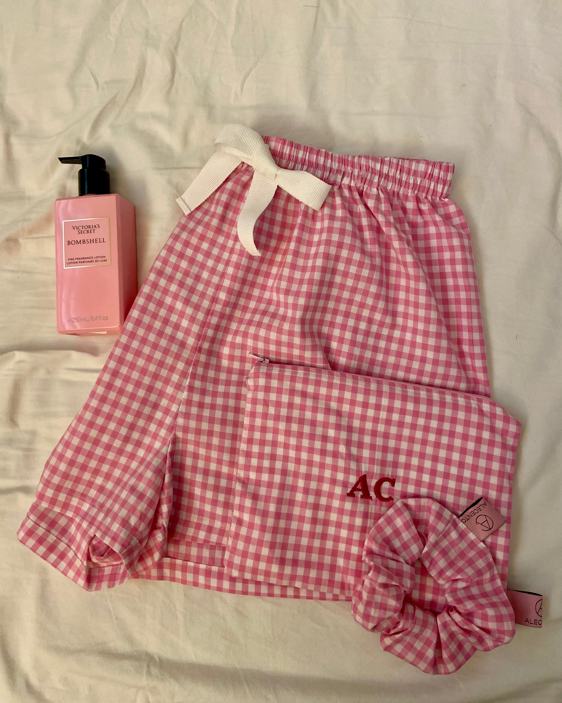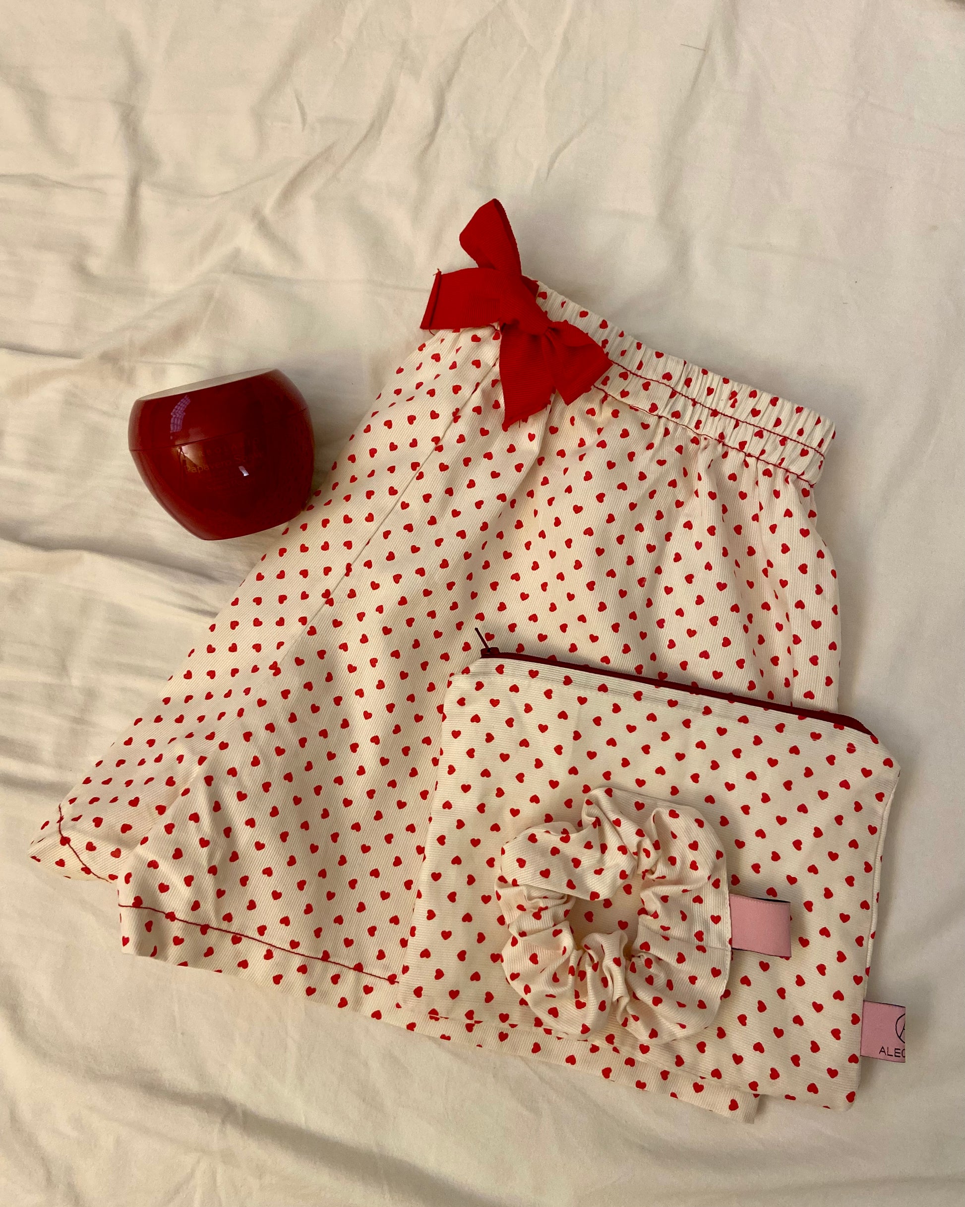 Set composto da Shorts + Pochette + scrinchie con ricamo personalizzato in cotone 100% è stato pensato per avere tutto abbinato! Il prodotto è realizzato a mano in Italia.