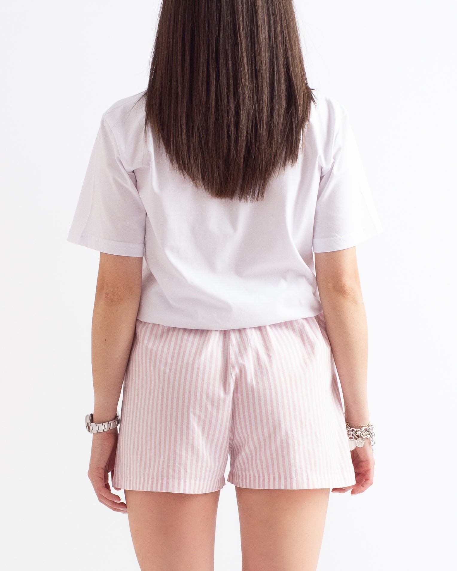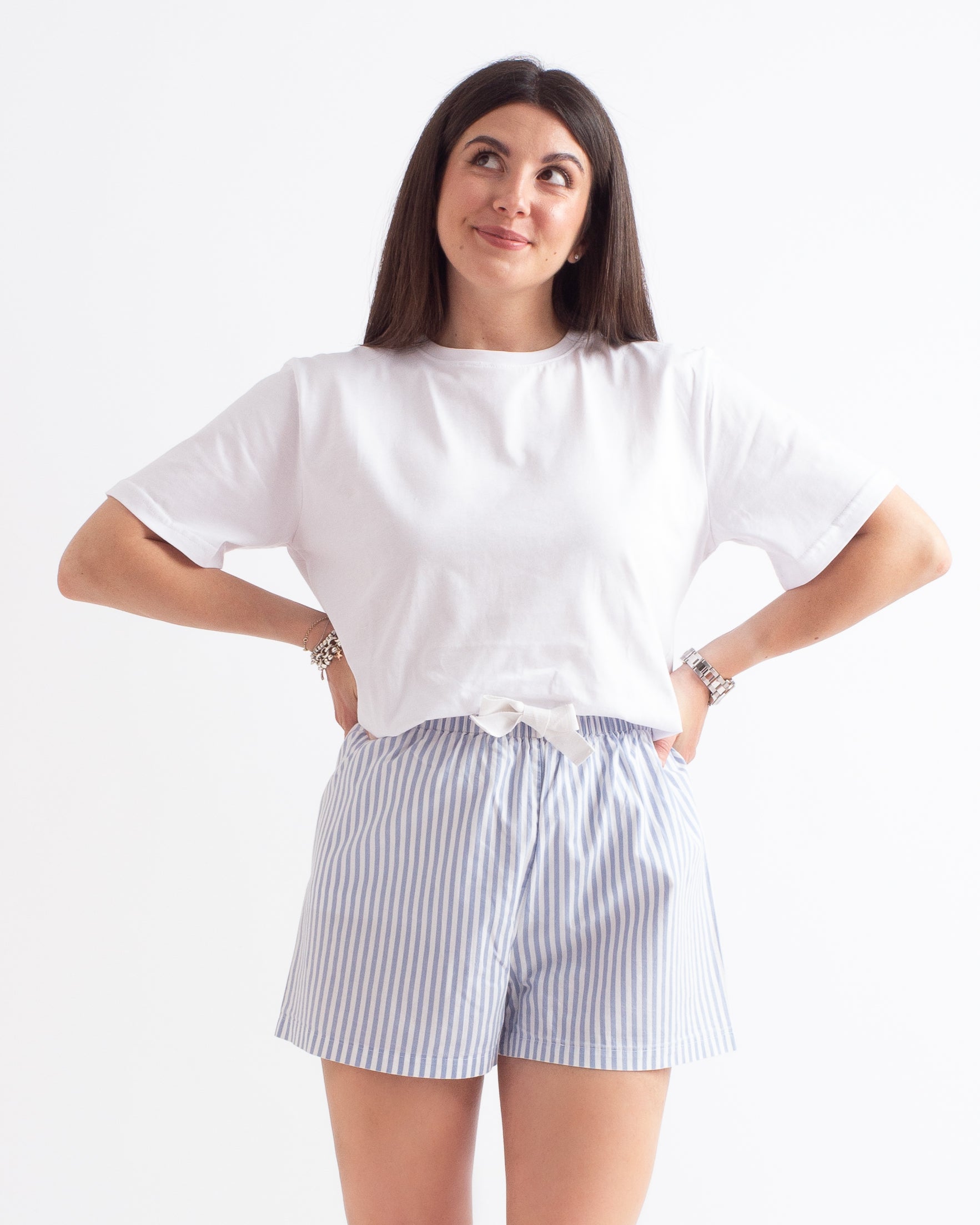 Shorts in cotone 100%. Grazie alla sua vita elastica, al suo materiale morbido e leggero e alla gamba ampia, ti sentirai a tuo agio! Nato come pantaloncino da notte, ma puoi indossarlo in qualsiasi occasione. Il prodotto è realizzato a mano in Italia.