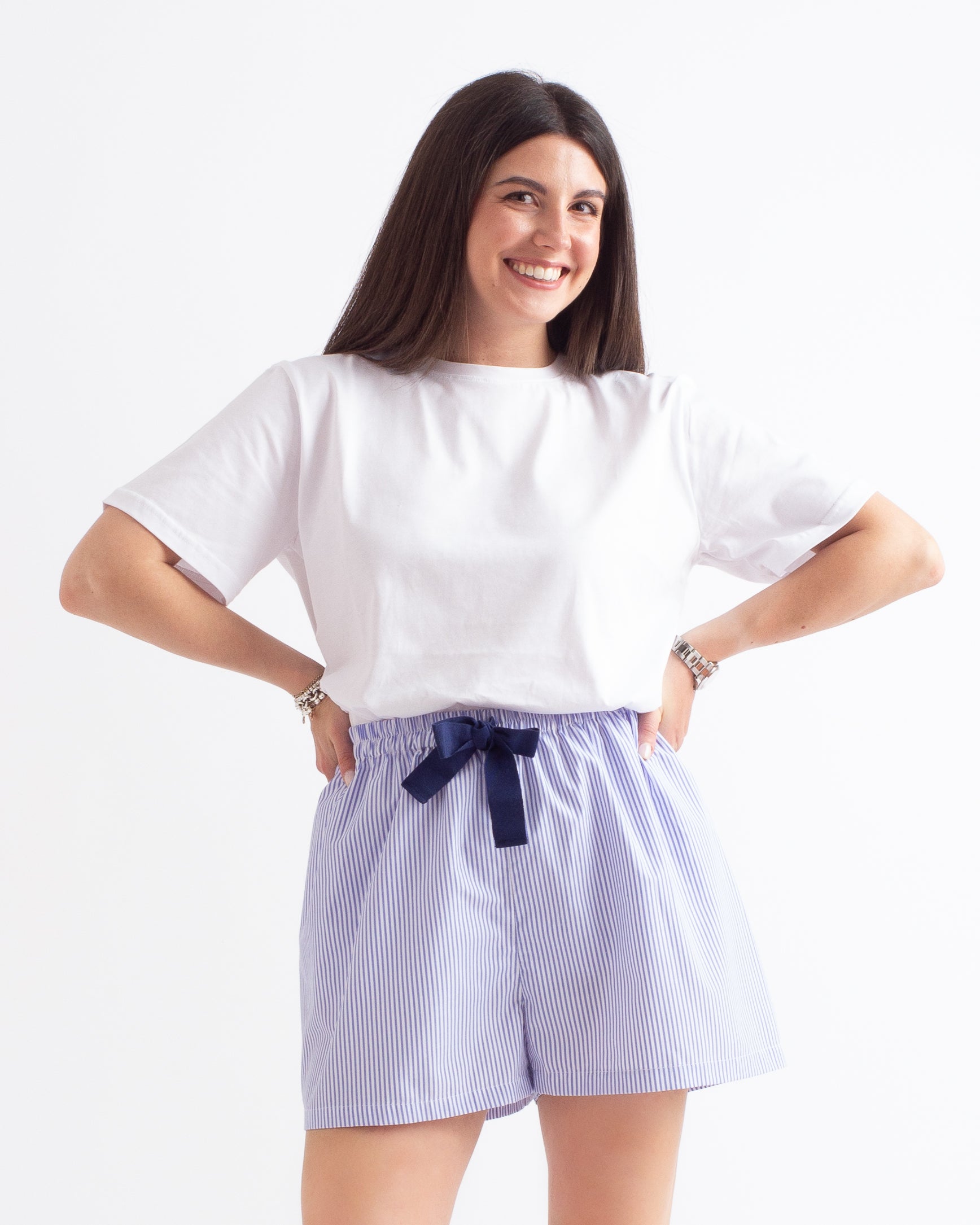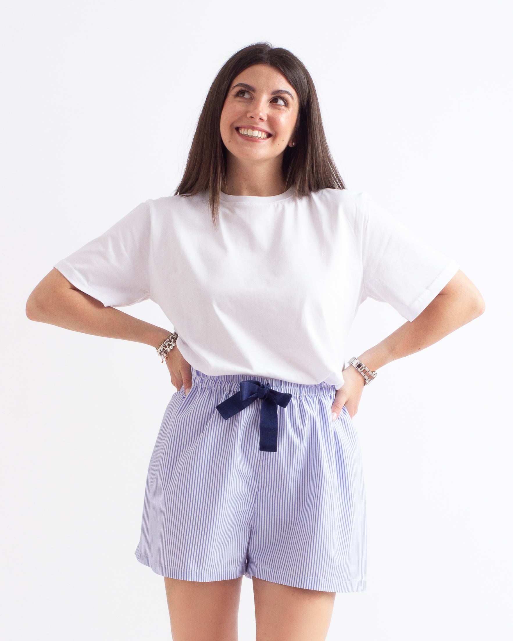 Shorts in cotone 100%. Grazie alla sua vita elastica, al suo materiale morbido e leggero e alla gamba ampia, ti sentirai a tuo agio! Nato come pantaloncino da notte, ma puoi indossarlo in qualsiasi occasione. Il prodotto è realizzato a mano in Italia.