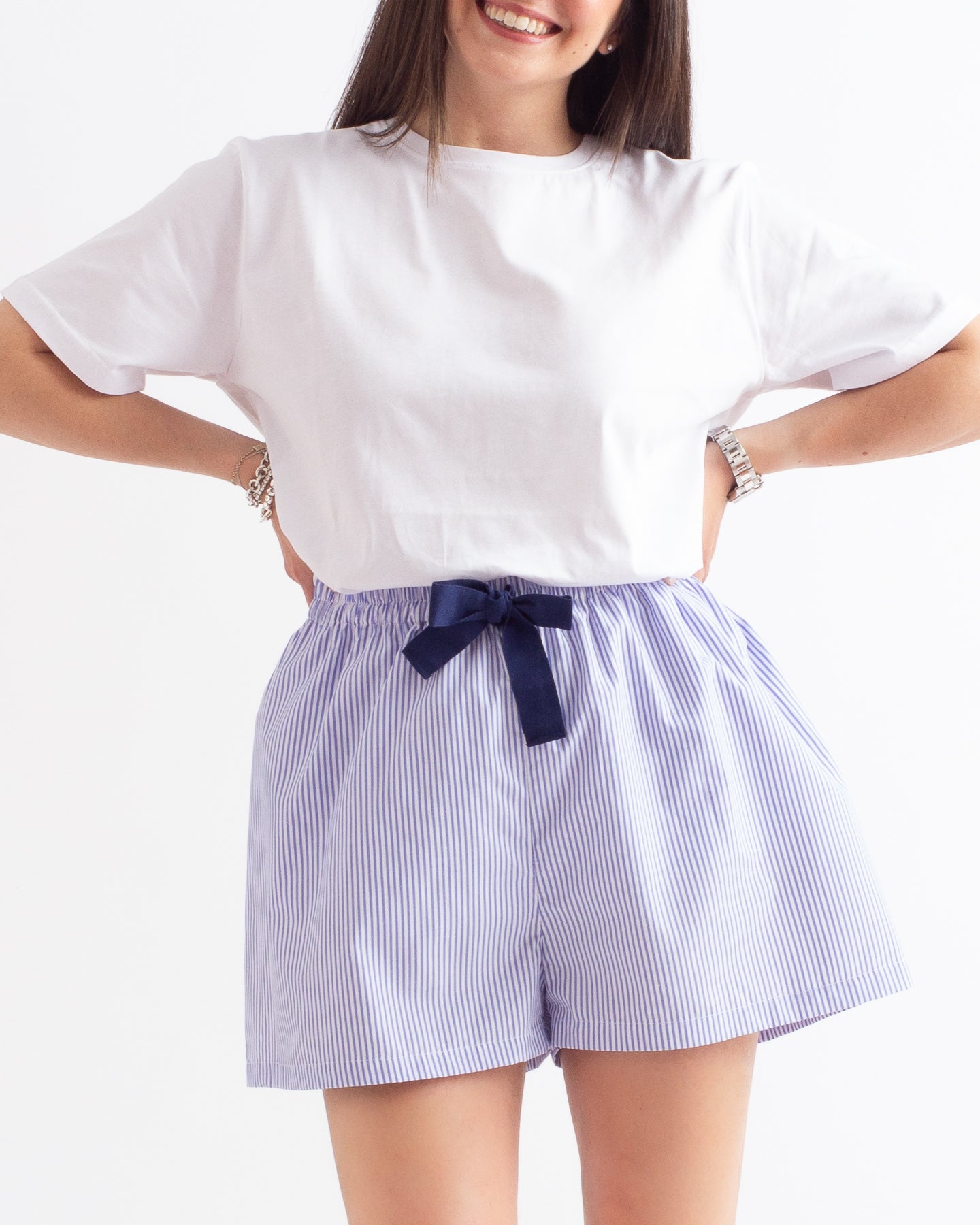 Shorts in cotone a Righe Sottili