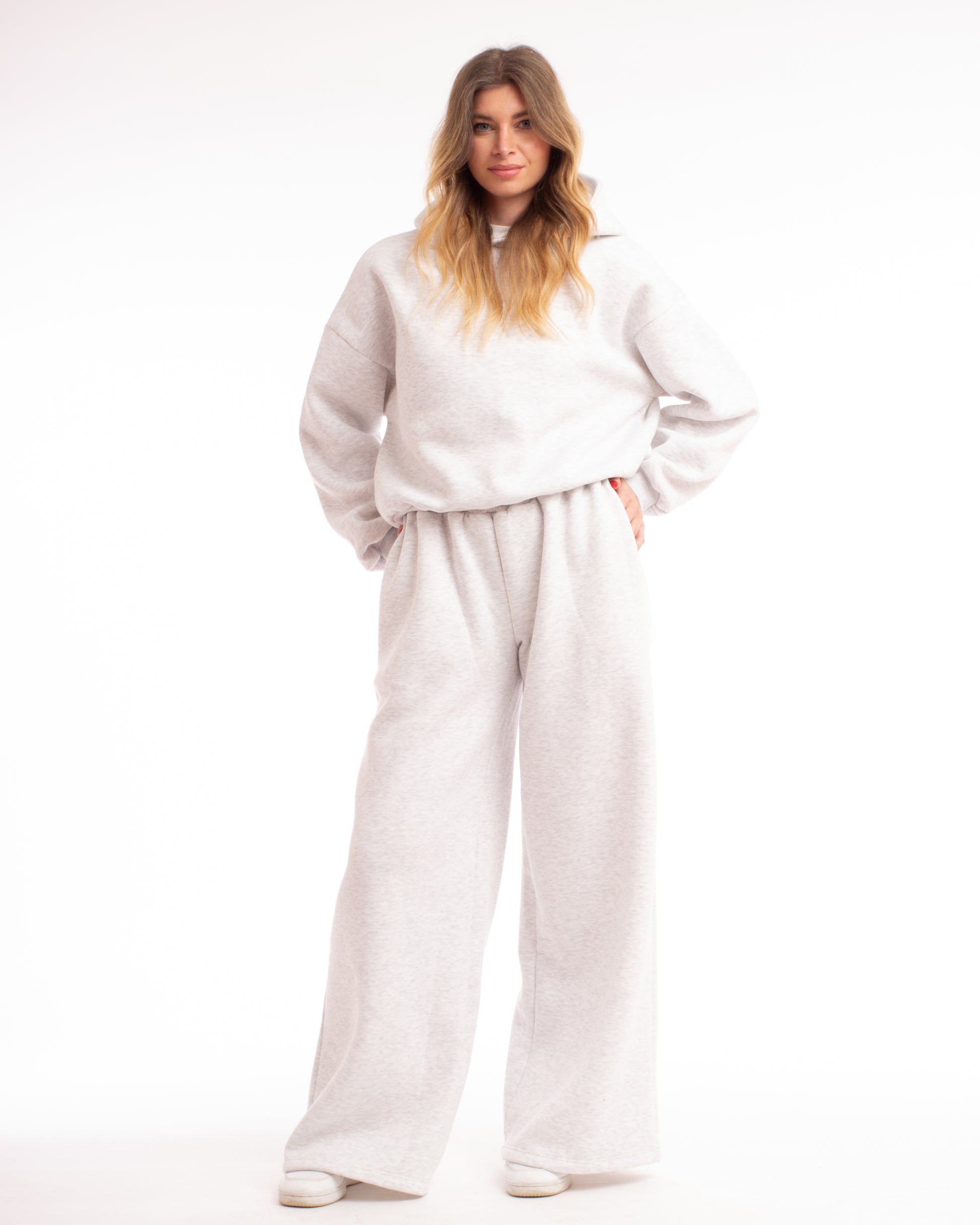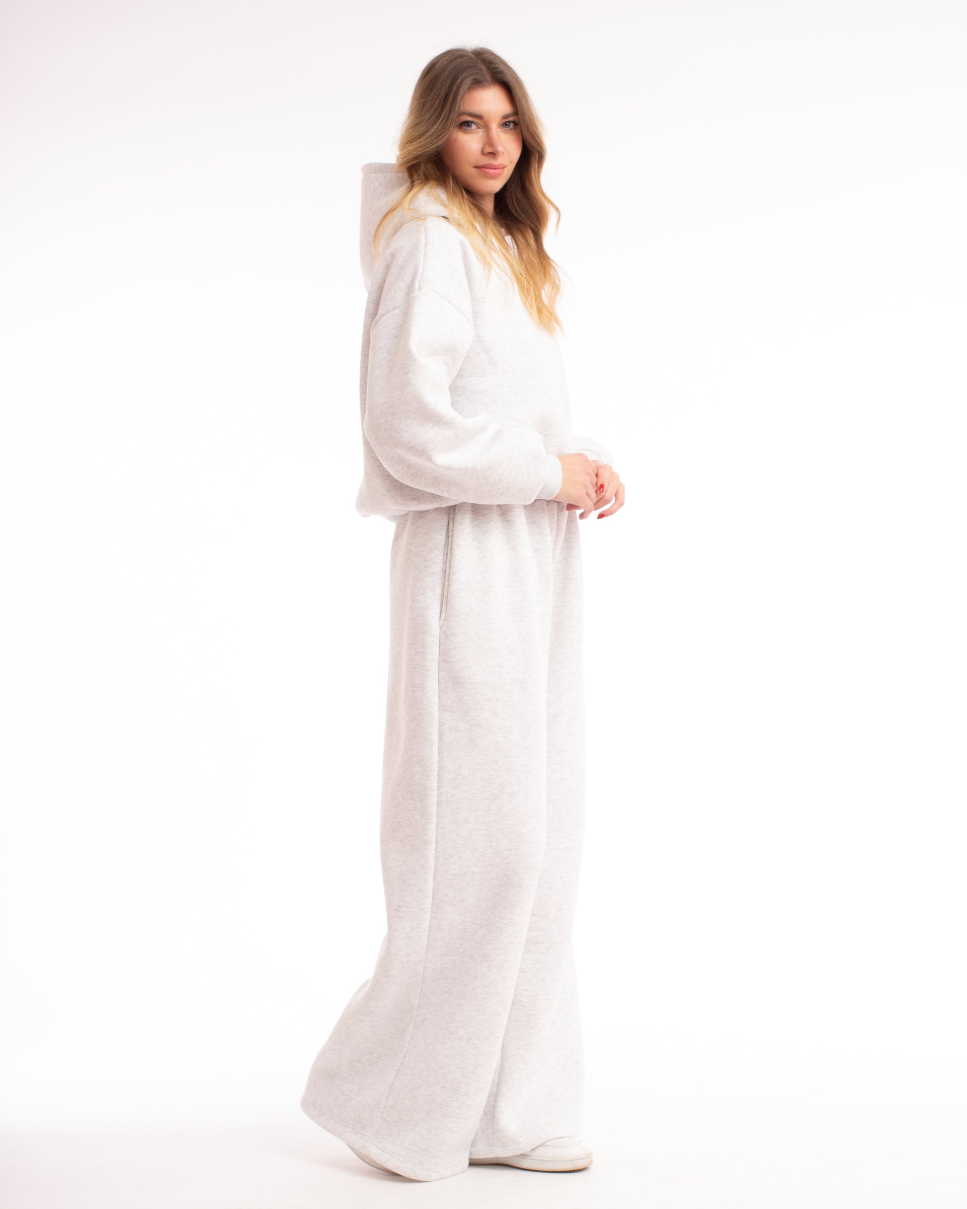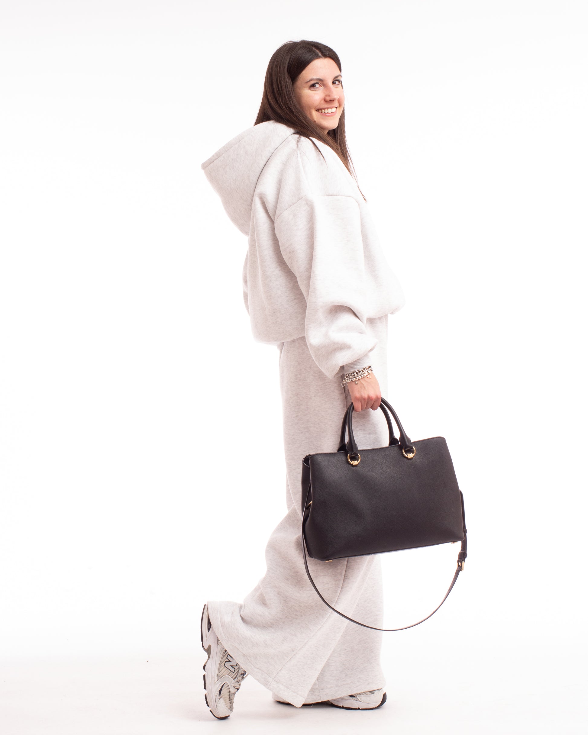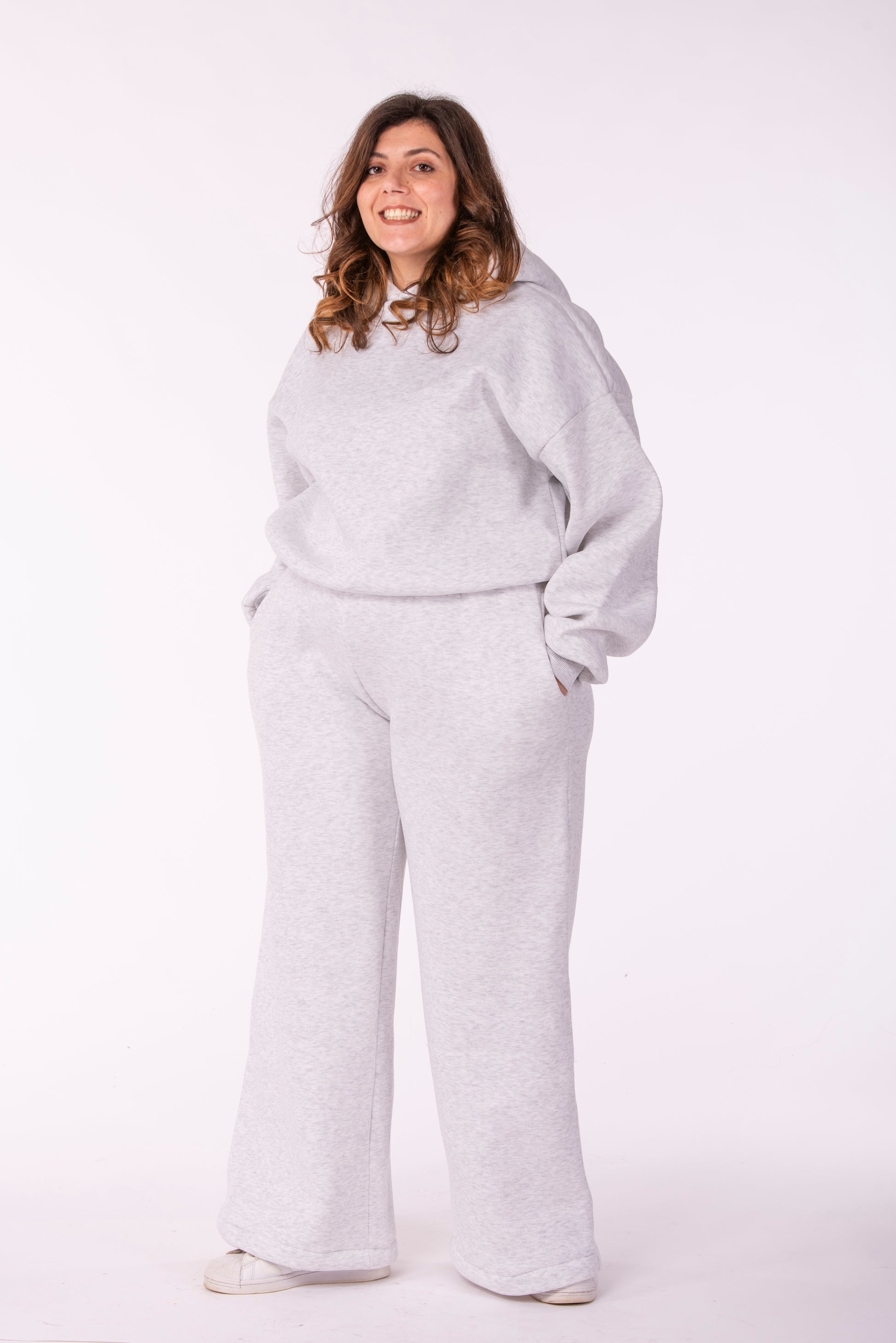 Immagina una tuta che ti faccia sentire sofisticata senza rinunciare al comfort. Muse è nata per questo. Realizzata con un tessuto incredibilmente morbido e di alta qualità, questa tuta accarezza la pelle e dona una silhouette sofisticata senza rinunciare alla comodità. È calda, chic e versatile: perfetta per un look ricercato sia dentro che fuori casa. Ideale per sentirsi una vera musa in ogni momento. La tuta è composta da una felpa con il logo ricamato tono su tono e un pantalone palazzo.