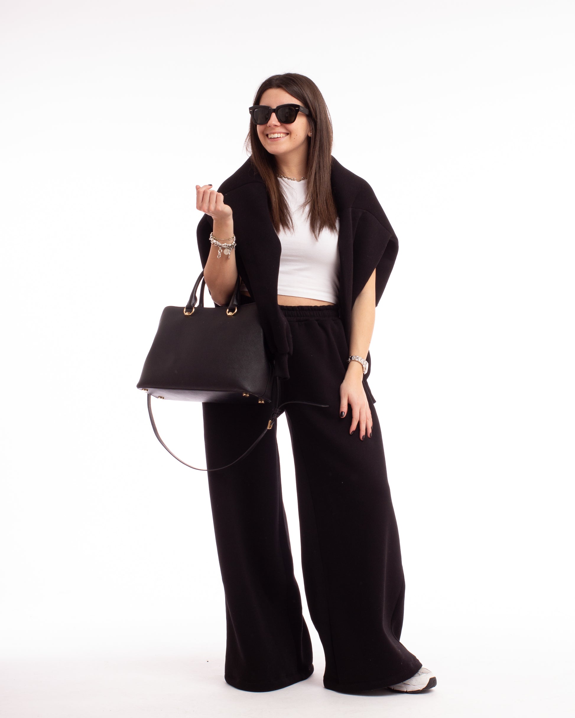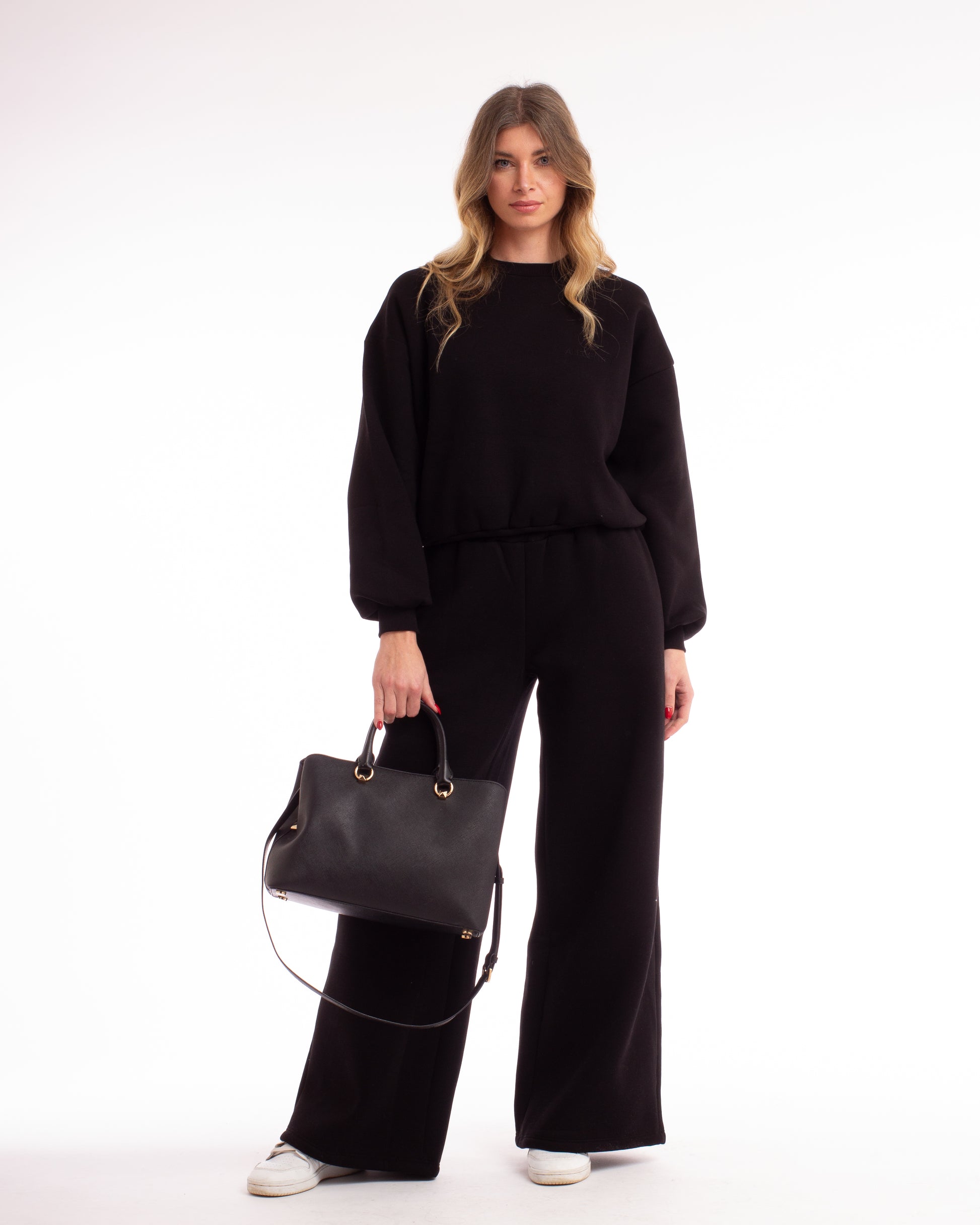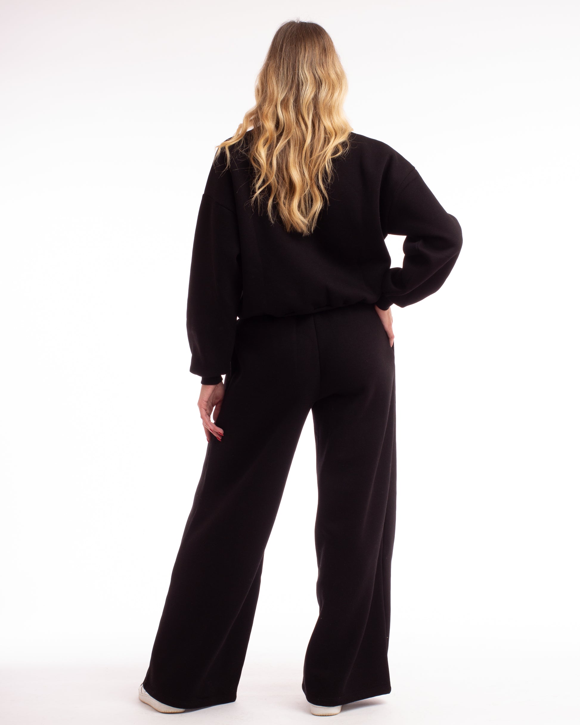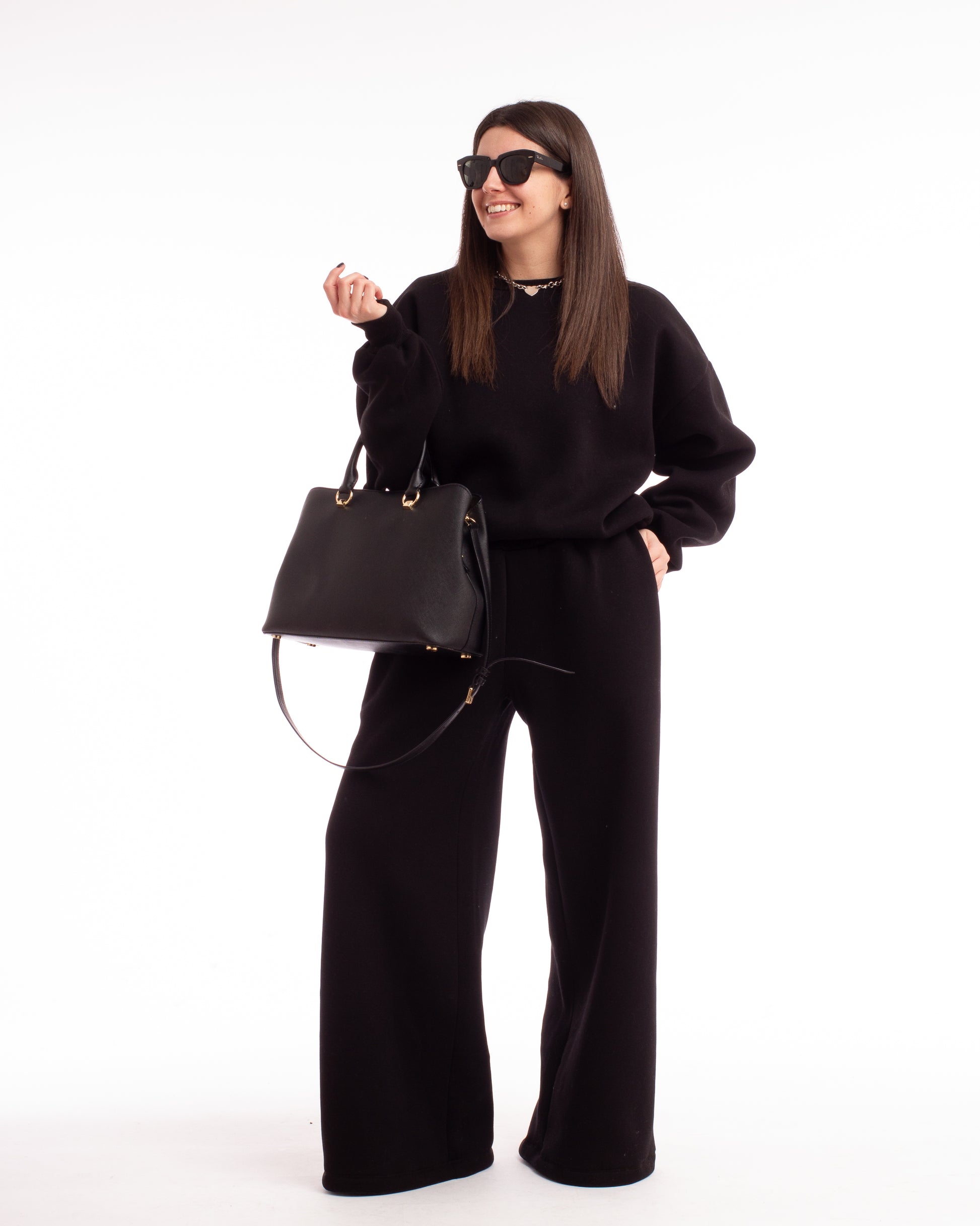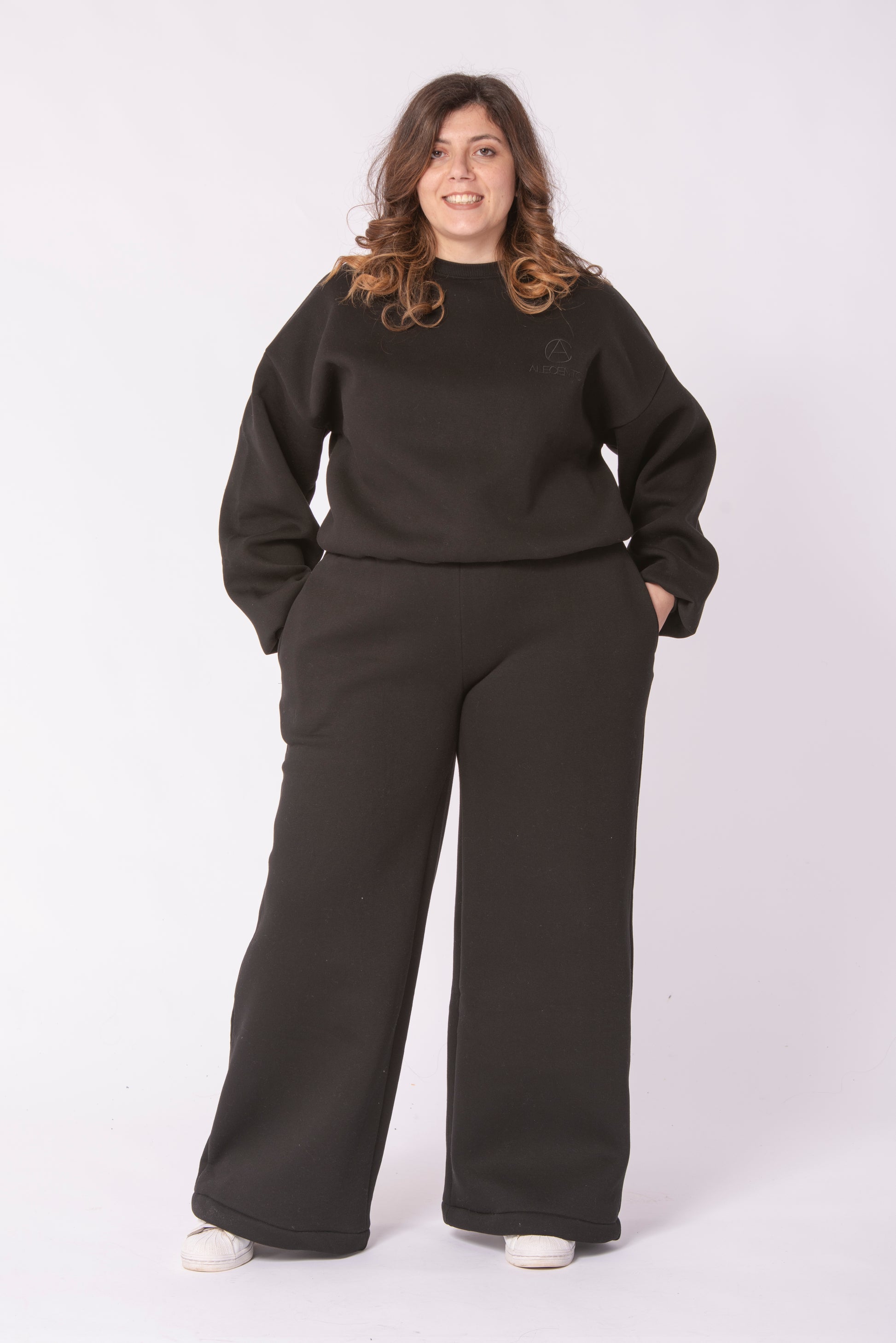 Immagina una tuta che ti faccia sentire sofisticata senza rinunciare al comfort. Muse è nata per questo. Realizzata con un tessuto incredibilmente morbido e di alta qualità, questa tuta accarezza la pelle e dona una silhouette sofisticata senza rinunciare alla comodità. È calda, chic e versatile: perfetta per un look ricercato sia dentro che fuori casa. Ideale per sentirsi una vera musa in ogni momento. La tuta è composta da una felpa con il logo ricamato tono su tono e un pantalone palazzo.